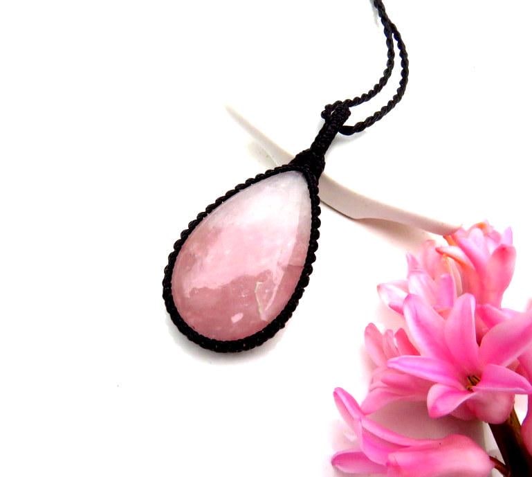 Rose Quartz macrame necklace, gift ideas for the hopeless romantic
