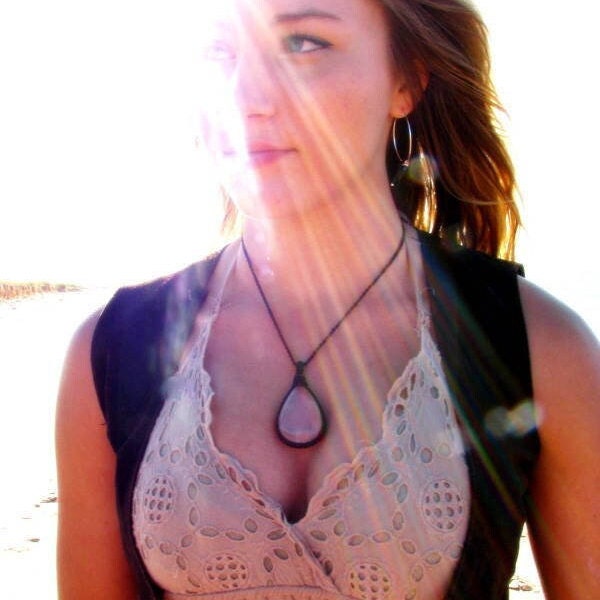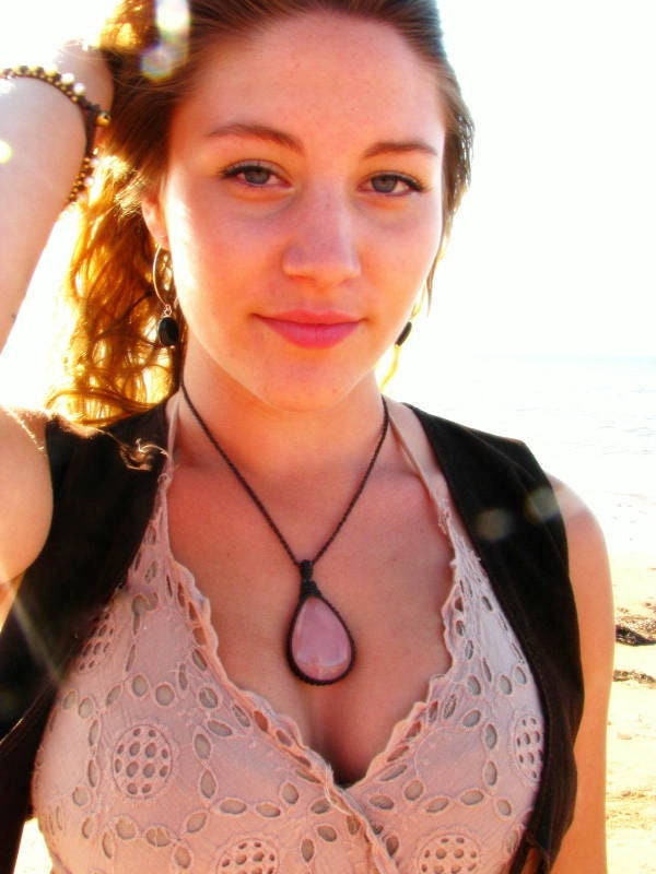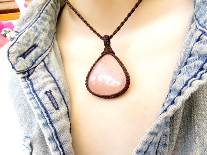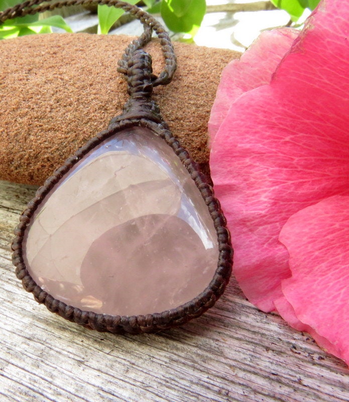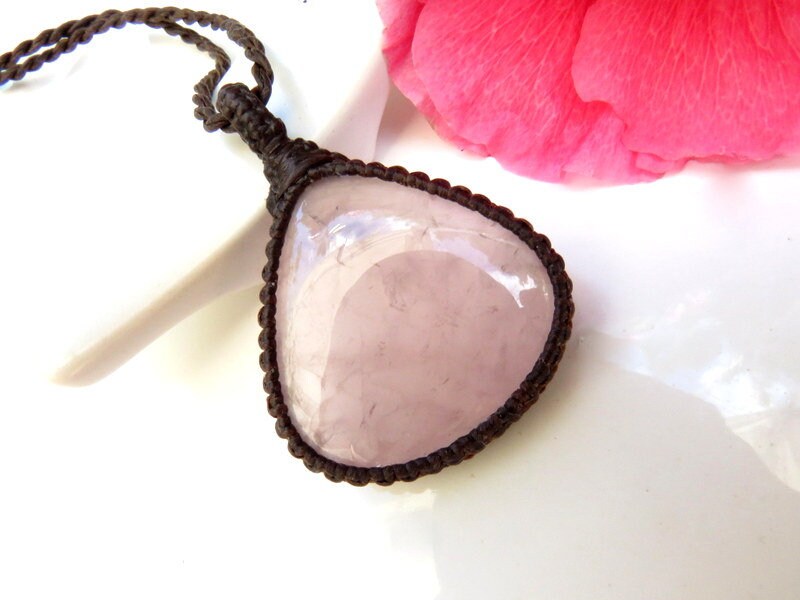 ✨SELF-LOVE, COMPASSION & POSITIVE ENERGY ✨Sweet ~ Rose Quartz macrame necklace - Beautiful, soft , translucent pink - lovely teardrop shape and smooth polish . Gorgeous ! An important stone for helping us to raise our vibrations of love and compassion - for ourselves and others ~ : ) You will receive the exact stone in photos #2-6 and the video. *Minor Natural imperfections
