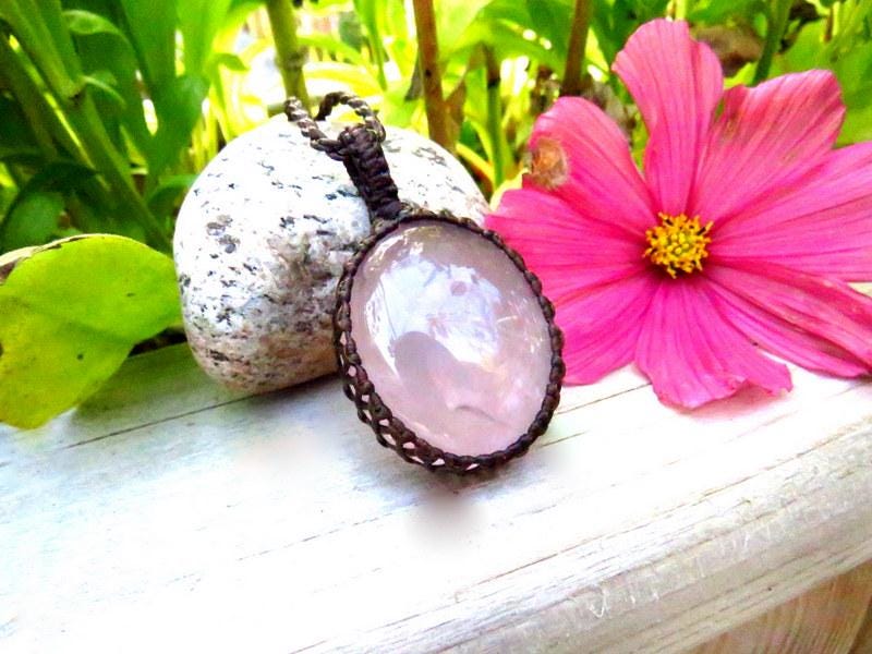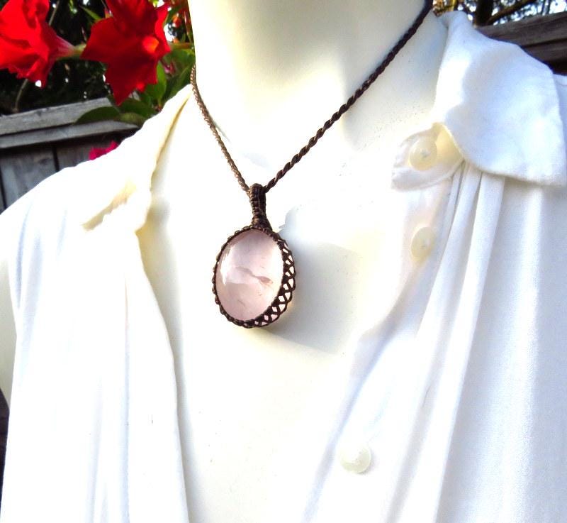 💗SELF-LOVE & COMPASSION 💗 High quality Rose Quartz macrame necklace - This is a beautiful, translucent rosy pink Rose Quartz crystal that has a special glow about it with a special world inside ! Rose Quartz is an important stone for helping us to raise our vibrations of love and compassion - for ourselves and others ~ : ) *You will receive the exact crystal in photos #1-6 and the video. A beautiful description of the stone's properties will be included 🌹