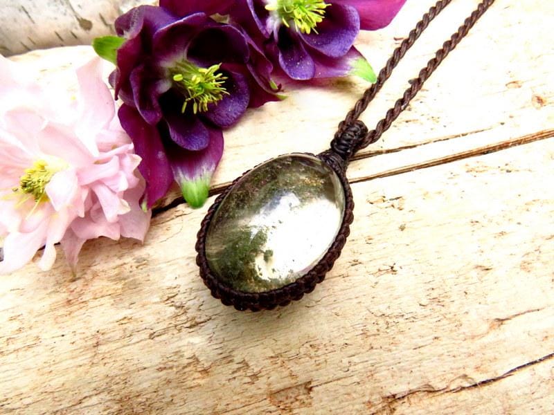 Materials: gemstones, garden quartz, quartz, waxed cord, shamans stone, lodolite.