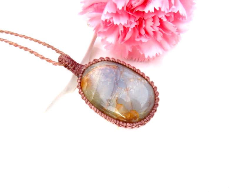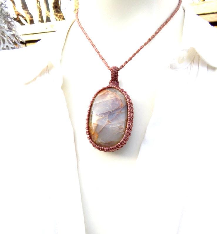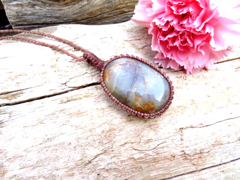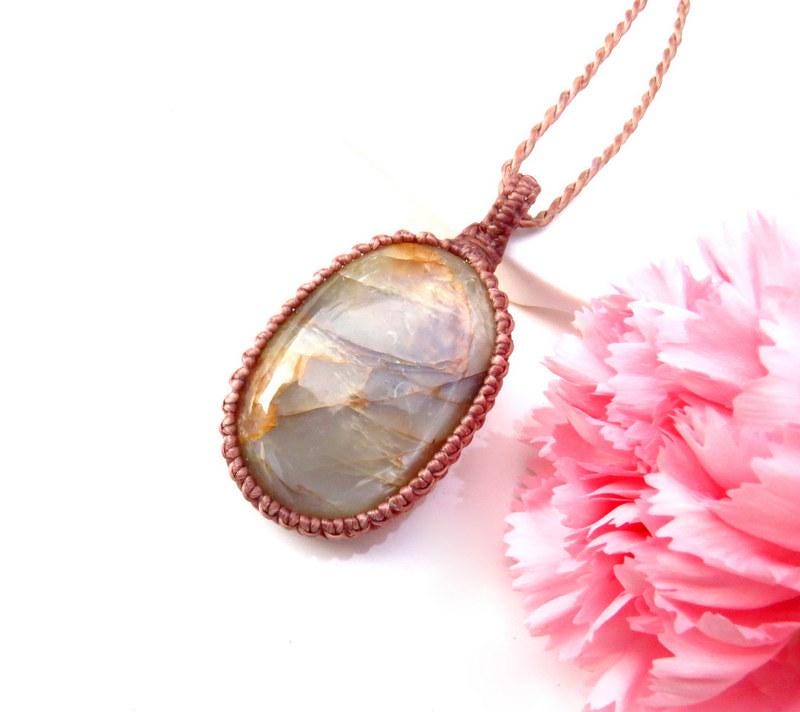 Gray Moonstone gemstone necklace,, macrame jewelry