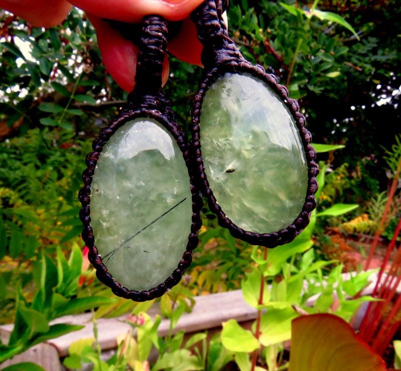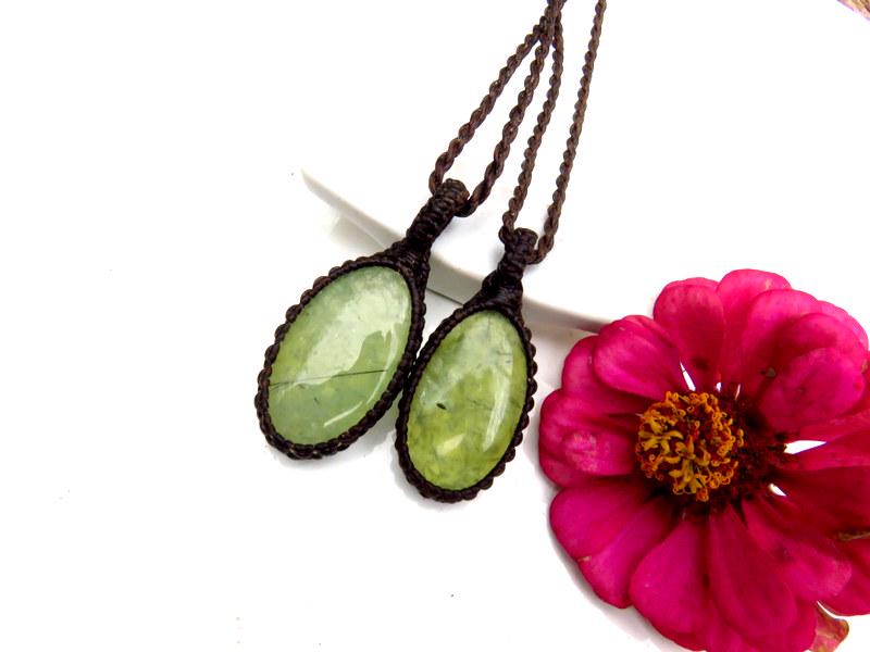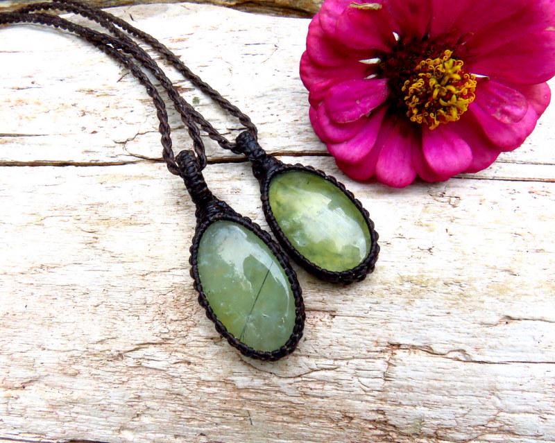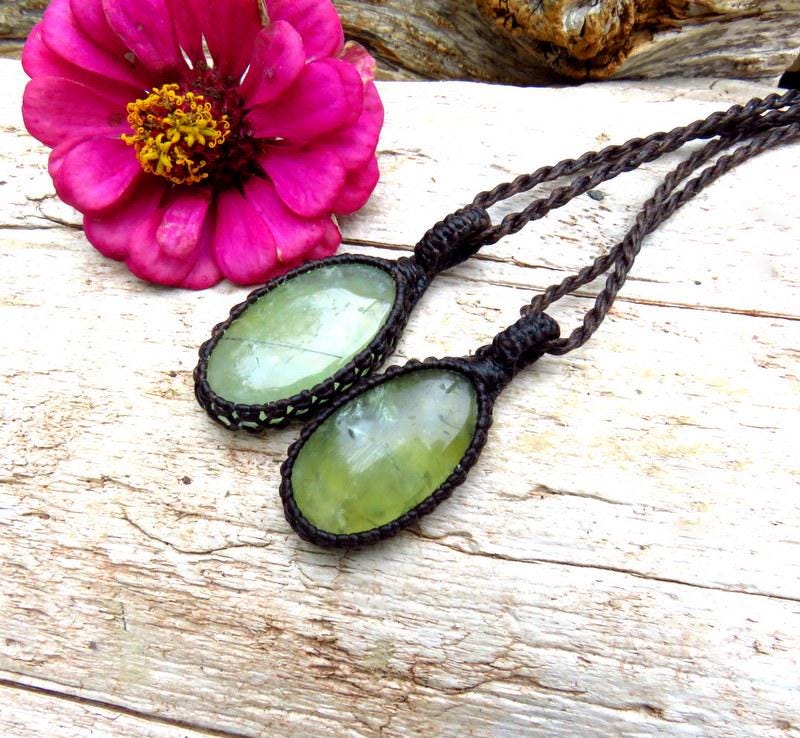 💚INNER KNOWING, DREAMING & REMEMBERING 💚This listing if for two Prehnite macrame necklace ! Quality Prehnite macrame necklaces - Dreamy - Soft, translucent lime green - These pairs can be worn as a stacked necklace set or worn separately - also a lovely idea for best friends and soul-mates - also a great size for those kids! *You will receive BOTH (2) pieces with the cord length of your choosing for each
