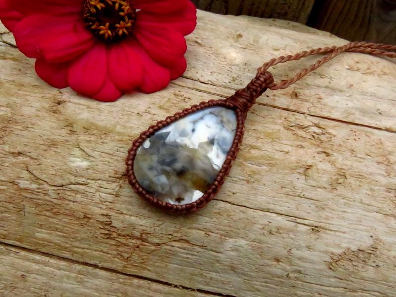 🌱GROWTH & CHANGE 🍂 A very unique Merlinite Shaman (or, Dendrite Opal) gemstone necklace - Imagine a delicate slice of opal with these intricate, fern-like patterns that seem to dance across its surface - a whimsical scene, full of tiny, fantastical 'trees and leaves', (dendrites) all swirling in a delightful, organic chaos. These patterns, known as "dendrites," are actually mineral inclusions that have been cleverly disguised as delicate, ancient tree branches or delicate ferns. They turn each piece into a tiny, personal landscape, inviting you to get lost in its detail. Wearing Dendrite Opal is like carrying a miniature enchanted forest with you—a piece of Earth’s artistry that’s both playful and profound.