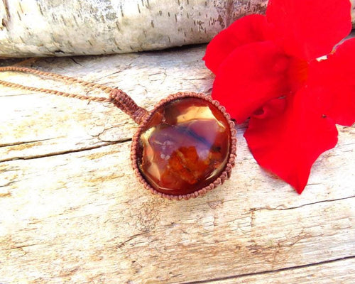 🧡COURAGE, WISDOM & VITALITY🧡Superb Carnelian macrame necklace 🌙 bold red- orange Carnelian crystal with beautiful patterns and a also includes a druzy cavern! Powerful , positive vibrations! Use carnelian to cleanse your space and energise your spirit ...You will receive the exact piece in photos #1-8 and the video.