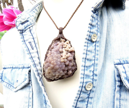 If you have been looking for that amazing statement piece - well, here it is ! This listing is for a spectacular Grape Agate macramé necklace. Grape Agate is an incredible wonder that resembles sweet bunches of purple grapes💜 So many super lovable bubbly purple crystals - a very RARE find from one location in Indonesia. Also known as Botryoidal Chalcedony with Druzy Quartz. ✨