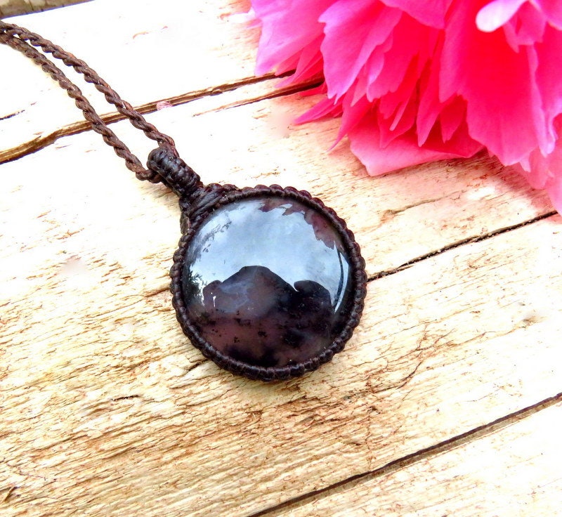 Enchanting 💜 Purple Sage Agate Necklace - translucent mauve with gorgeous black plumes - resembling pressed flowers - beautiful, shiny polish and a classic, round shape!