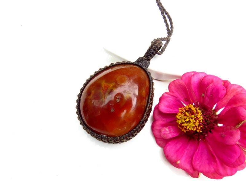 Carnelian Macrame Necklace: Courage & Fertility Crystal Healing