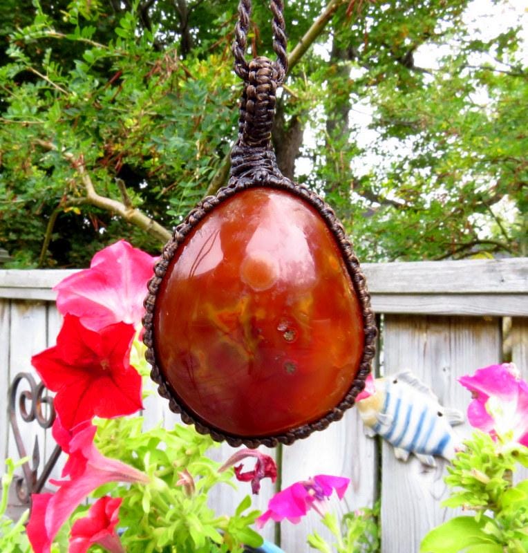 🧡COURAGE, WISDOM & VITALITY🧡Superb Carnelian macrame necklace - deep orange and red Carnelian crystal egg - powerful , positive vibration! Use carnelian to cleanse your space and energise your spirit ...You will receive the exact piece in photos #1-7 and the video.
