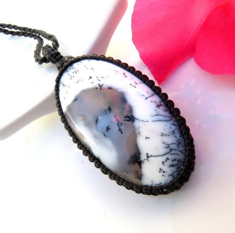 🌱GROWTH & CHANGE 🍂 Simply sweet Dendrite Opal macrame necklace - lovely balck dendritic inclusions and patterns - One of our best selling gemstones - This piece of dendrite opal, with its winter-y mysterious landscape, is one of mother nature's masterpieces ✨ You will receive the exact piece in photos #2-7 and the video.