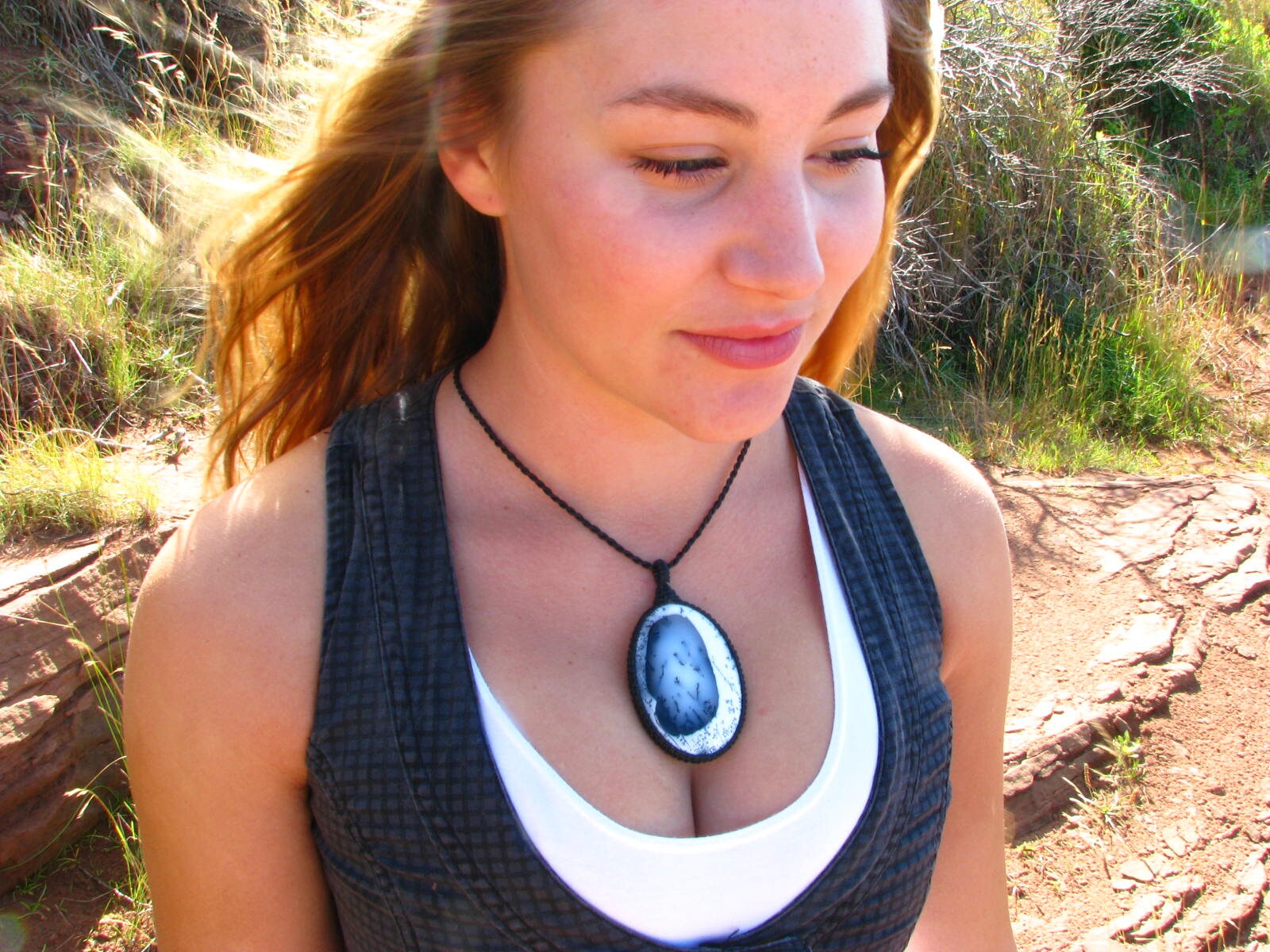 *Dendrite Opal pendant is 5.4 cm long (not including the loop) and 3 cm wide