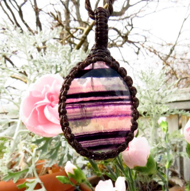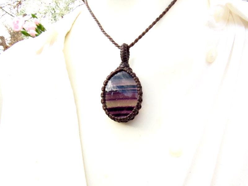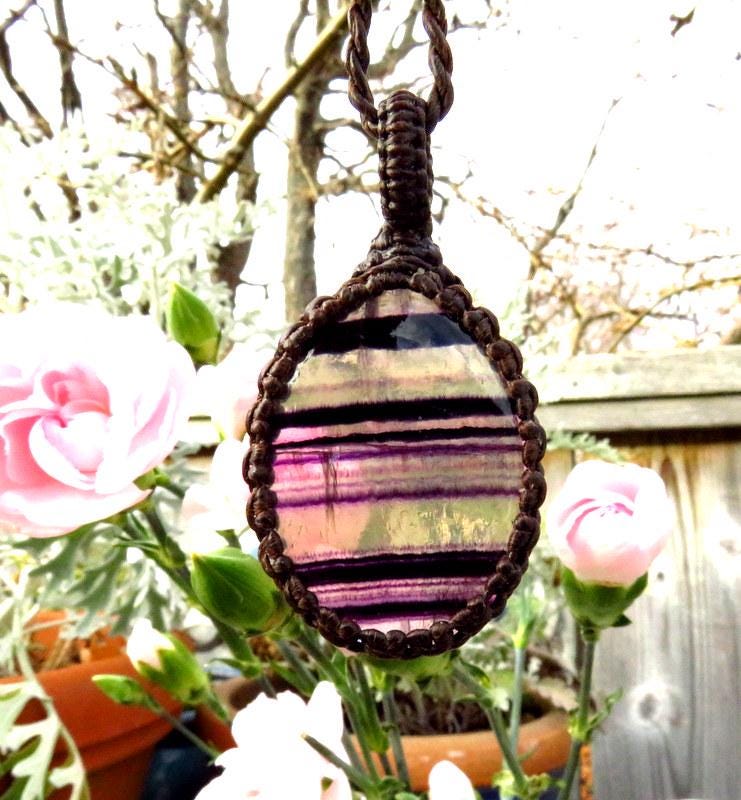Fluorite crystal necklace, macrame necklace
