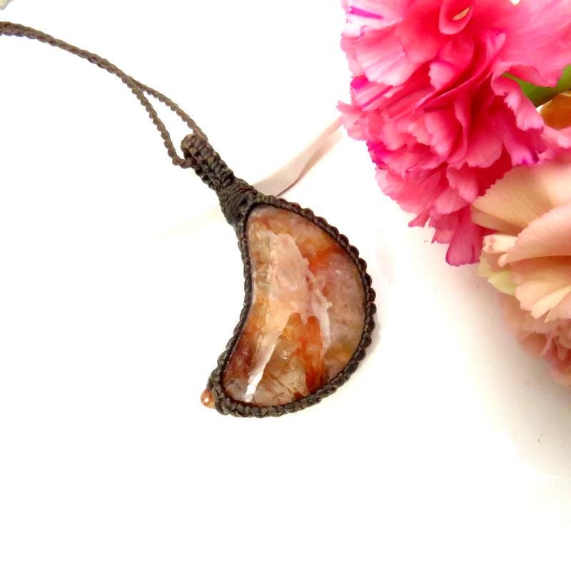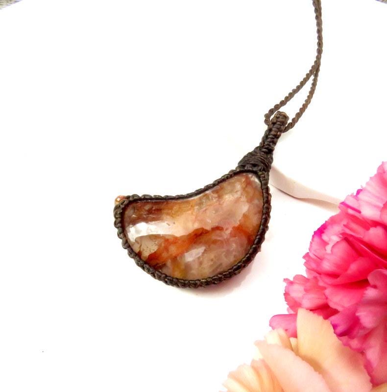 Golden Healer Quartz macrame necklace, gemstone necklace,moon necklace