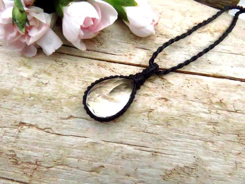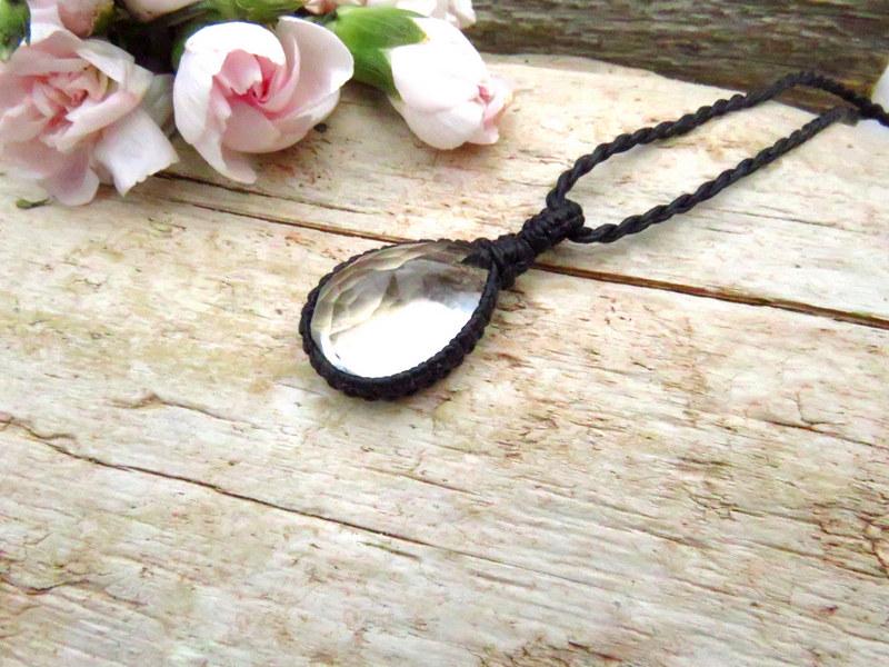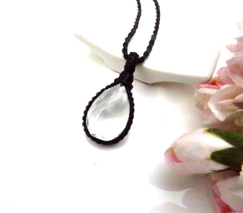 Crystal Clear Quartz macrame necklace - beautiful Quartz crystal with a facet cut that twinkles in the the light - PURE energy in an elegant and earthy design ✨