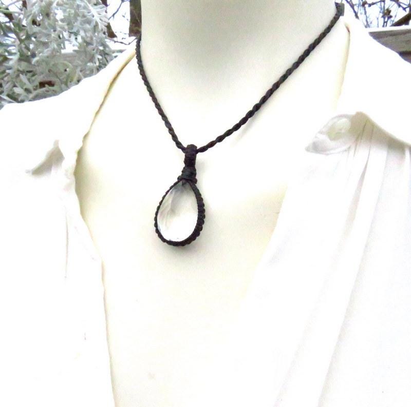 Materials: quartz, crystal, quartz crystal, waxed cord.