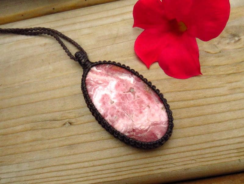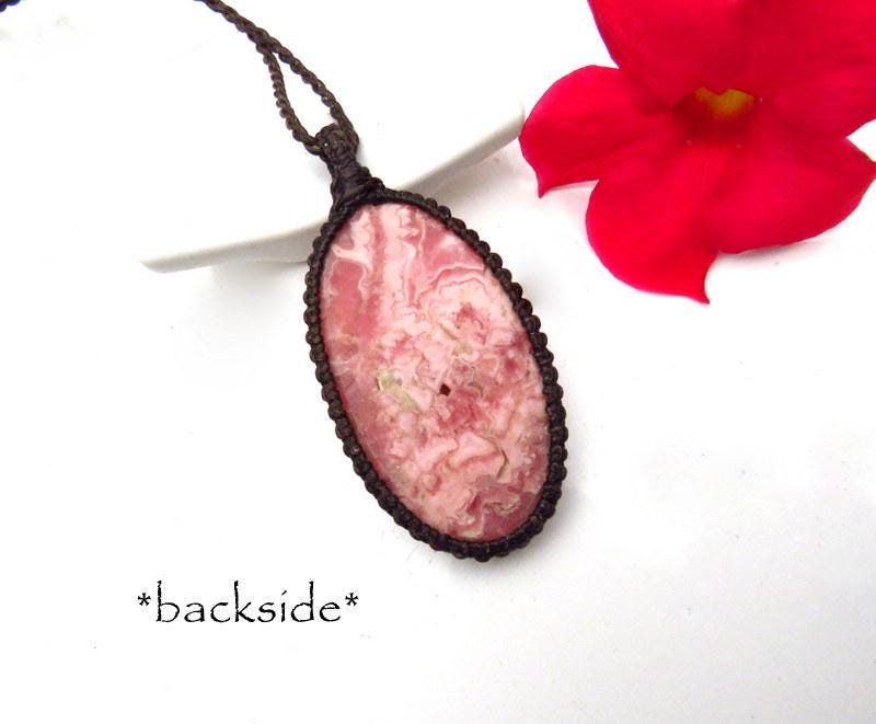 Top quality Rhodocrosite macrame necklace -gorgeous pink with lovely patterns - reminding us of roses or pink peonies 🌹 Rhodocrosite evokes feelings of love, calm, sweetness - so lovely ! Sourced in Argentina.
