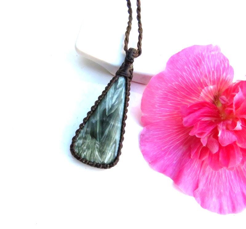 🦋CREATE NEW, POSITIVE PATTERNS & TRANSFORMATION 🦋Gorgeous Seraphinite gemstone macrame necklace - An absolute stunner with its distinctive angel wings and a touch of chatoyance! If you believe in angels, Seraphinite is the perfect stone to have in your collection! ✨⭐✨ You will receive the exact piece in the listing video and photos #1-6