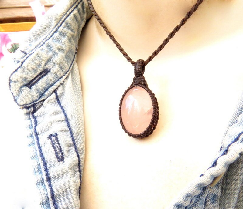 Materials: quartz, rose quartz, crystal, cabochon, waxed cord.