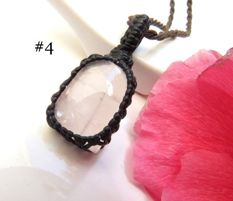 💗SELF-LOVE & COMPASSION 💗 YOU CHOOSE ! Beautiful and dainty size Rose Quartz Macrame Necklace - All of these Rose Quartz pieces are a beautiful, translucent rosy pink Rose Quartz crystal. An important stone for helping us to raise our vibrations of love and compassion - for ourselves and others ~ : ) *YOU CAN CHOOSE THE PIECE(S) THAT YOU WISH FROM THE DROP DOWN MENU - SIZE AND PRICE ARE INDICATED THERE AS WELL. **PLEASE NOTE: ONLY #4 IS AVAILABLE - THE REST HAVE ALREADY SOLD 🌹