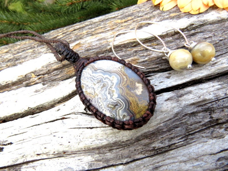 has mesmerizing yellow and gray banding and the .925 sterling silver gemstone earrings are also a soft yellow and gray -matching the Crazy Lace Agate necklace perfectly! A lovely set - would made the perfect Mother's Day gift ✨