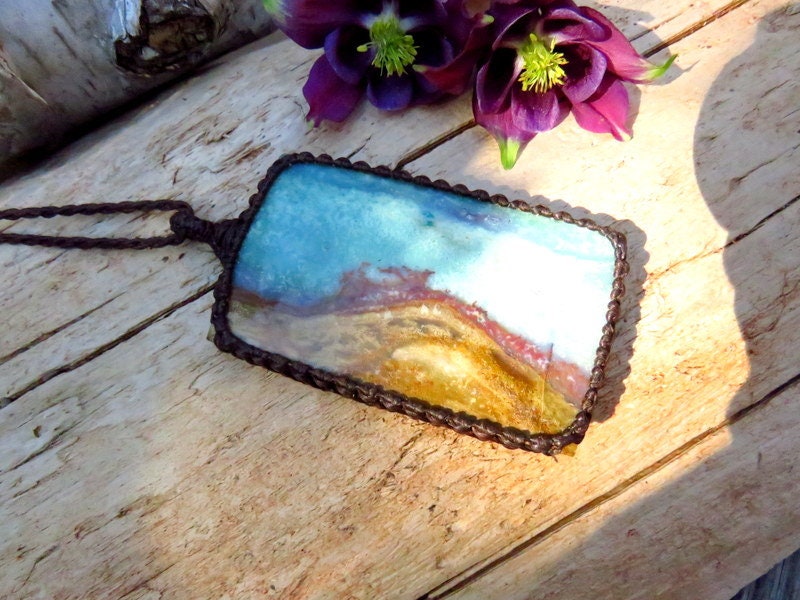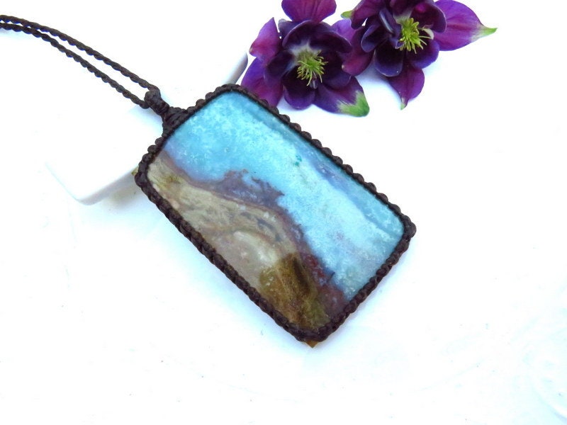 are and beautiful Blue Opalized Petrified Wood gemstone necklace! Petrified Wood with Blue Opal was first found as pebbles and larger rounded stones (“cobbles”) in streams and near the slopes of three volcanoes in Indonesia’s West Java Province. What the miners actually found was an ancient petrified forest (how cool is that?), which had been pushed over by a volcanic explosion. Then, over the ages, the wood was fossilized and preserved by opaline silica. A wonderful addition to the rock collector's collection!