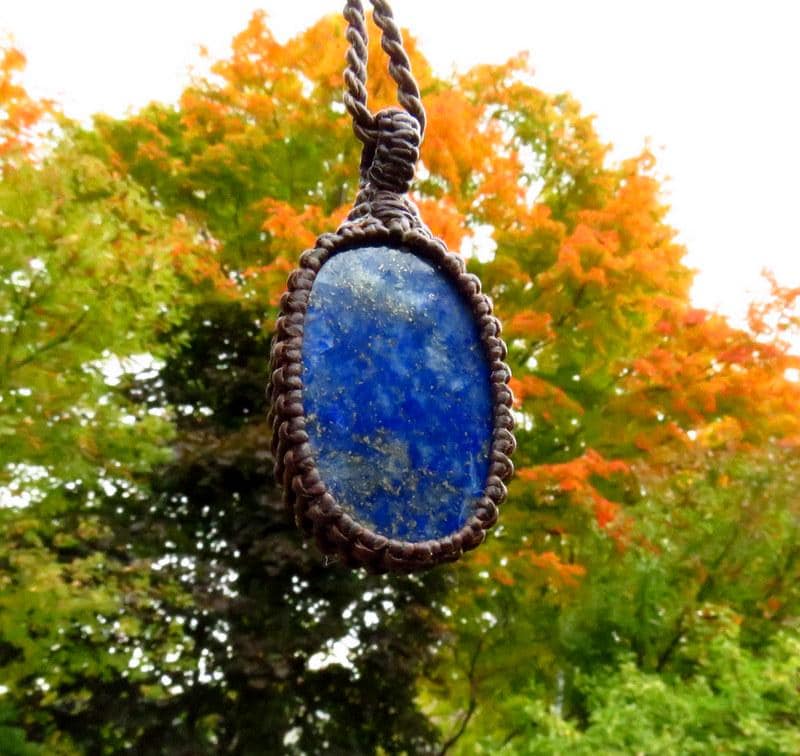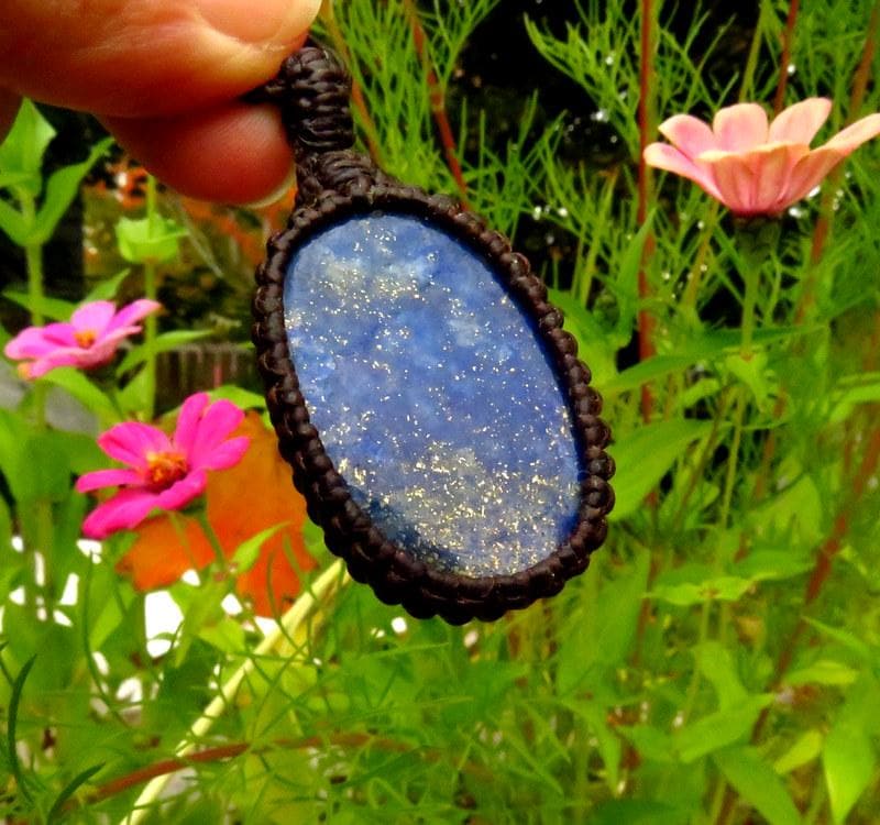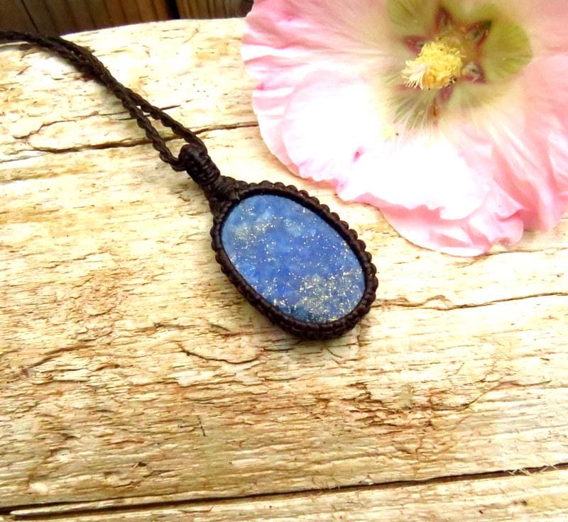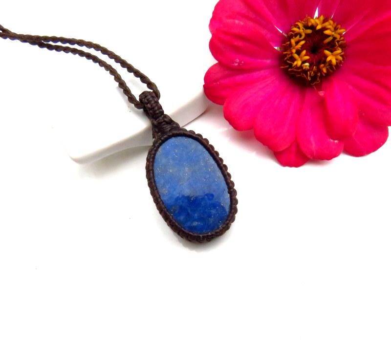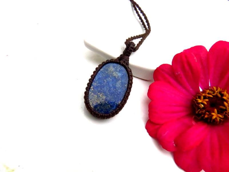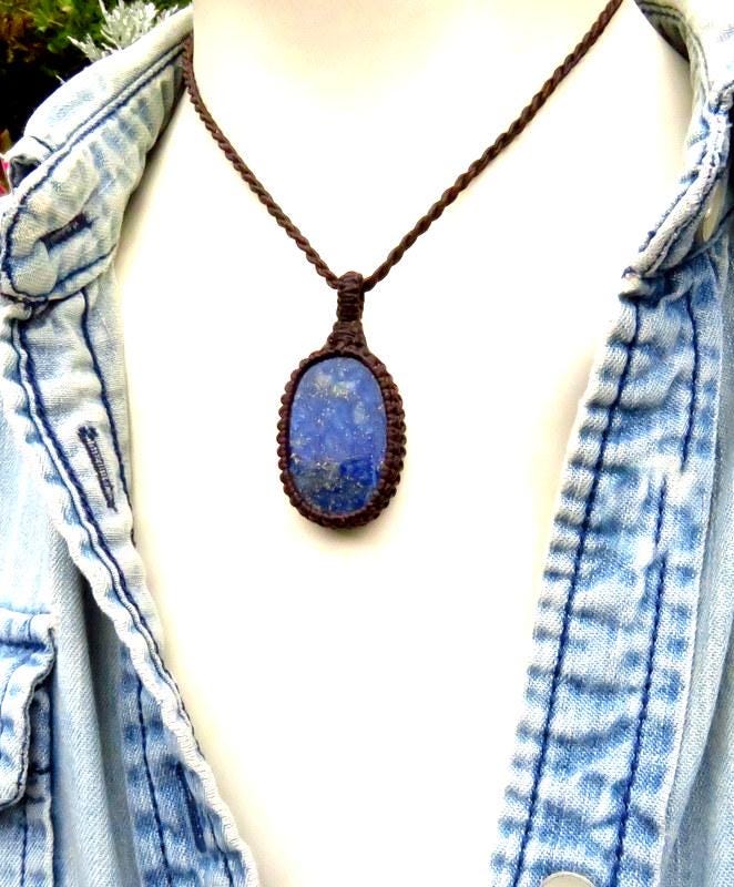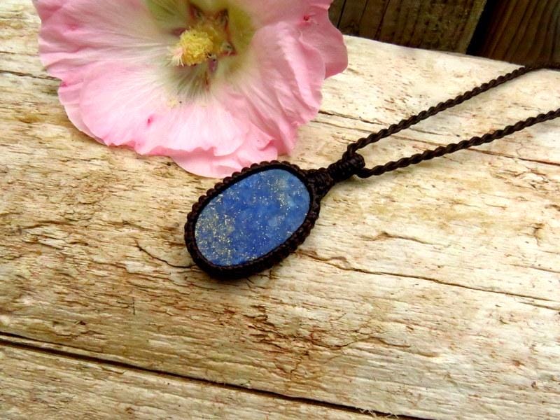 Superb Lapis Lazuli macrame necklace - lovely, deep royal blue Lapis Lazuli from Afghanistan- speckled with golden Pyrite - classic oval shape. The gemstone of ancient kings and modern-day dreamers - beckons with its deep blue color and golden flecks of Pyrite that twinkle like stars in a midnight sky ! 💙 A cherished companion for those on a journey of self-discovery and personal growth. Its association with the throat chakra also makes it a popular choice for enhancing communication and speaking one's truth with confidence and authenticity.