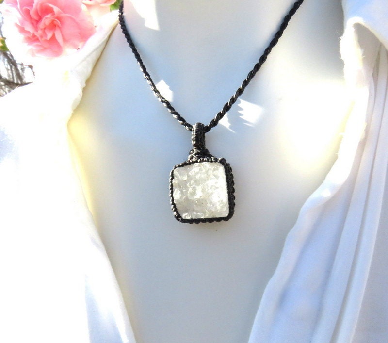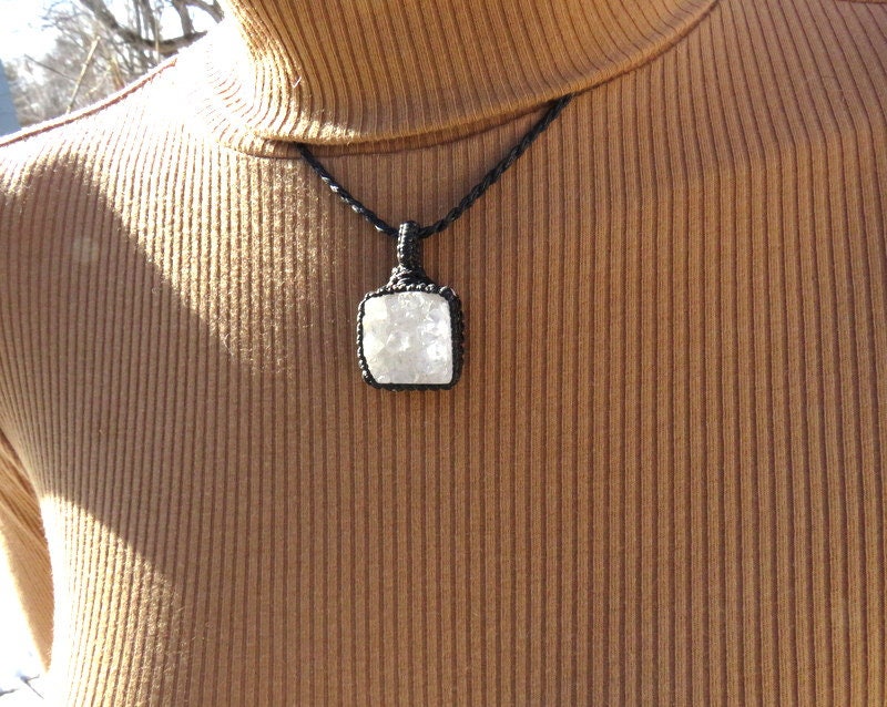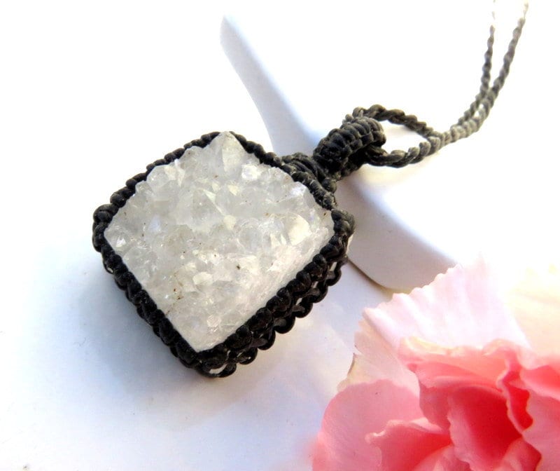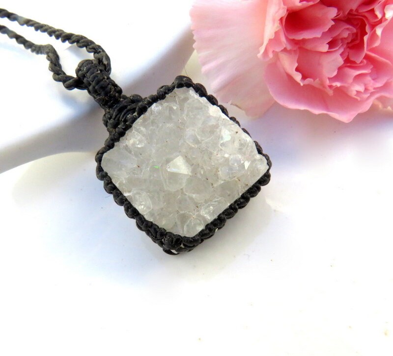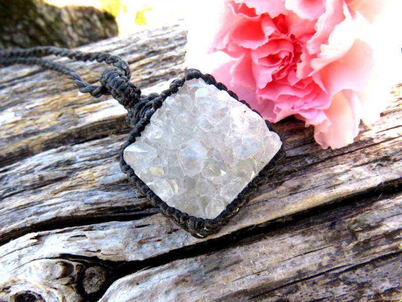 Materials: quartz, rocks, crystals, crystal, quartz crystal, druzy quartz, druzy, waxed cord.
