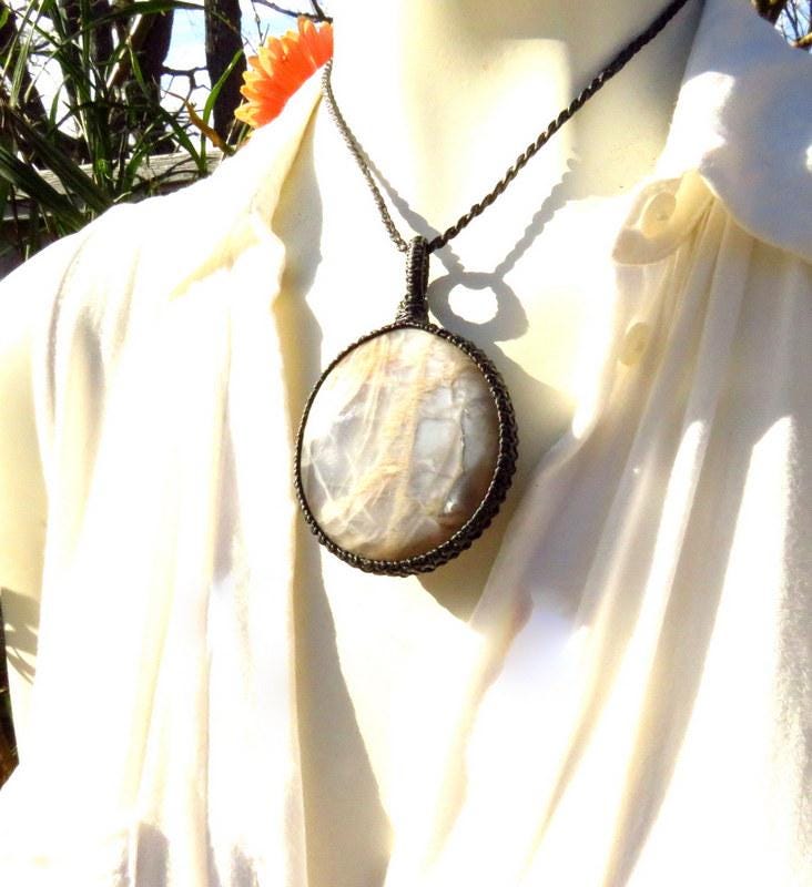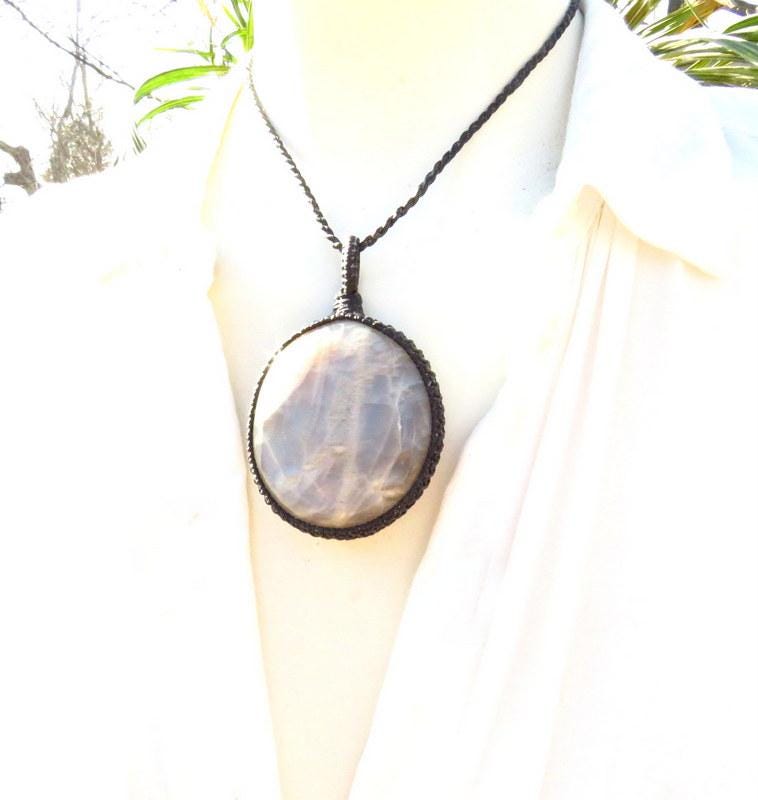*Peach Moonstone pendant is 5.7 cm in length (not including loop) and 5 cm wide