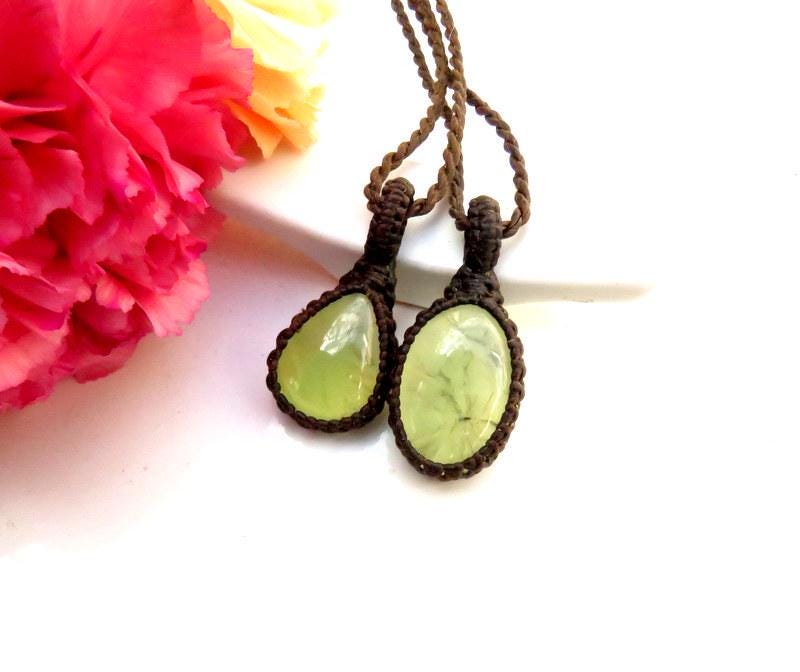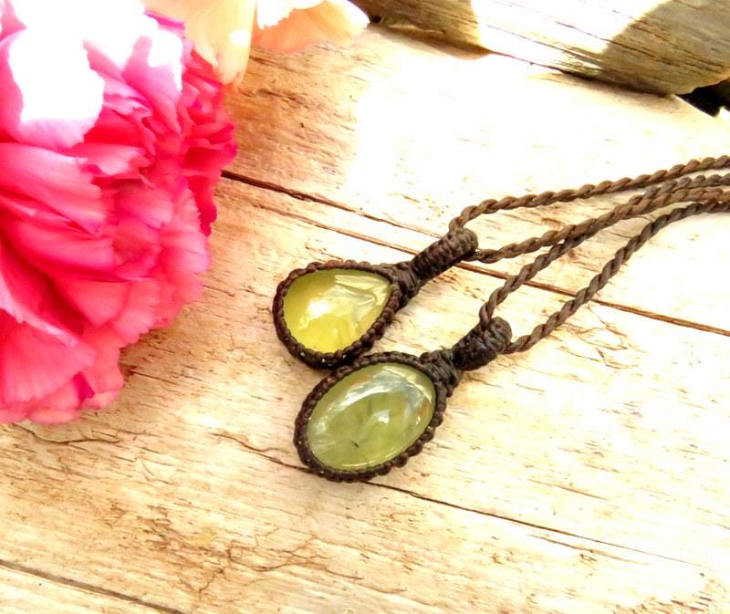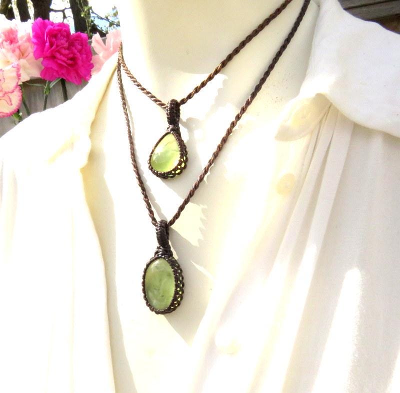 💚INNER KNOWING, DREAMING & REMEMBERING 💚This listing if for TWO Prehnite macrame necklaces ! Quality Prehnite macrame necklaces - Dreamy - Soft, translucent lime green - These necklaces can be worn as a stacked / layered necklace set or worn separately - also a lovely idea for best friends and soul-mates - also a great size for those kids! *You will receive BOTH (2) pieces with the cord length of your choosing for each (if you wish for different lengths, please indicate in the 'notes to seller' box in your cart or send us a message! )
