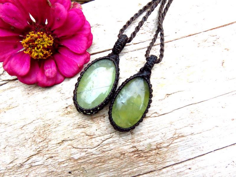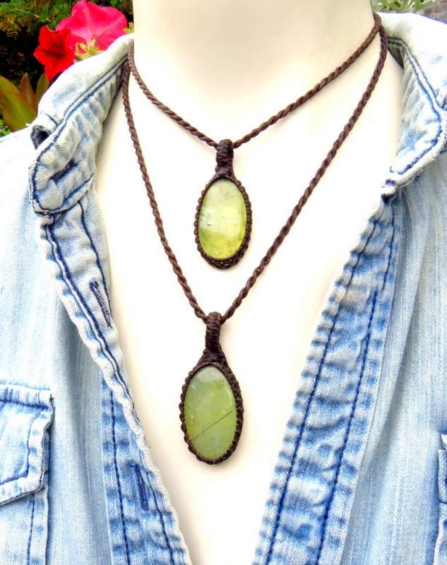 💚INNER KNOWING, DREAMING & REMEMBERING 💚This listing if for two Prehnite macrame necklace ! Quality Prehnite macrame necklaces - Dreamy - Soft, translucent lime green - These pairs can be worn as a stacked necklace set or worn separately - also a lovely idea for best friends and soul-mates - also a great size for those kids! *You will receive BOTH (2) pieces with the cord length of your choosing for each