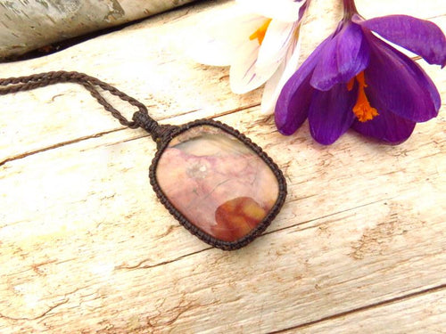 Beautiful Butterfly Jasper gemstone necklace - Also known as 'Mariposa Jasper ' - This semi - precious gemstone is a mosaic of earthy colours - brown with plum with a gorgeous translucent pool. Butterfly Jasper is highly valued for its aesthetic appeal and the sense of transformation and balance it is believed to bring to those who connect with it. Its distinctive appearance and meaningful symbolism make it a popular choice among crystal and gemstone enthusiasts.