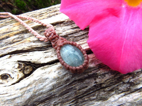Wear Aquamarine for "Good Luck **Fearlessness **Protection* - This listing is for a beautiful Aquamarine macramé necklace- Soft and dreamy aqua-green blue - smooth polish and unique shape ! All of our Healing Stones include a description of their healing properties ✨