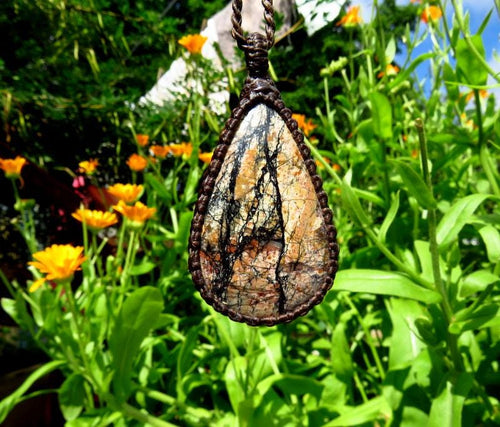 Unique Jasper macrame necklace - This one of a kind jasper is earthy and captitvating ! Bold, abstract patterns that are truly mother nature's artwork 🎨