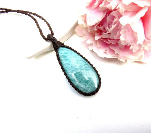 SUPER HERO & SOUL PURPOSE✨The ultimate gift idea for the SUPERHERO in your life ! (you?😊) A stunning Amazonite teardrop macrame necklace - Light green Amazonite crystal with a gorgeous pattern and a pretty flash * Natural imperfections - You will receive the exact stone in photos #1-6 and the video.