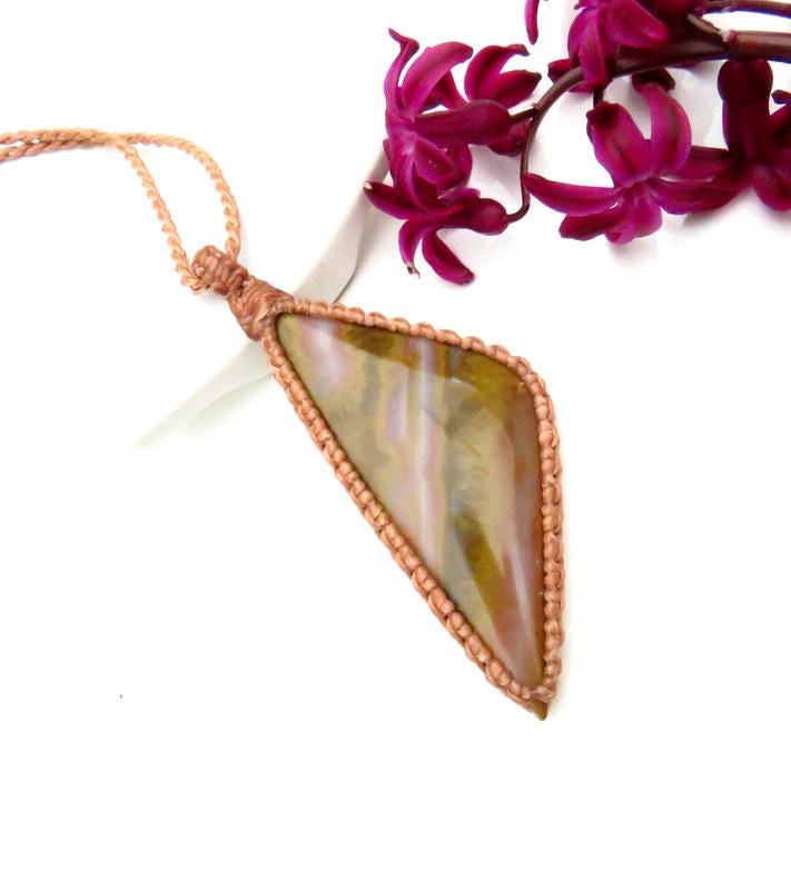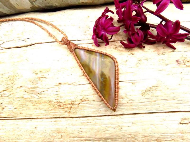 Fantastic Agate macrame necklace - unique shape and lovely, earthy colors - golden yellow, red and gray with gorgeous patterns - truly a wonder ✨