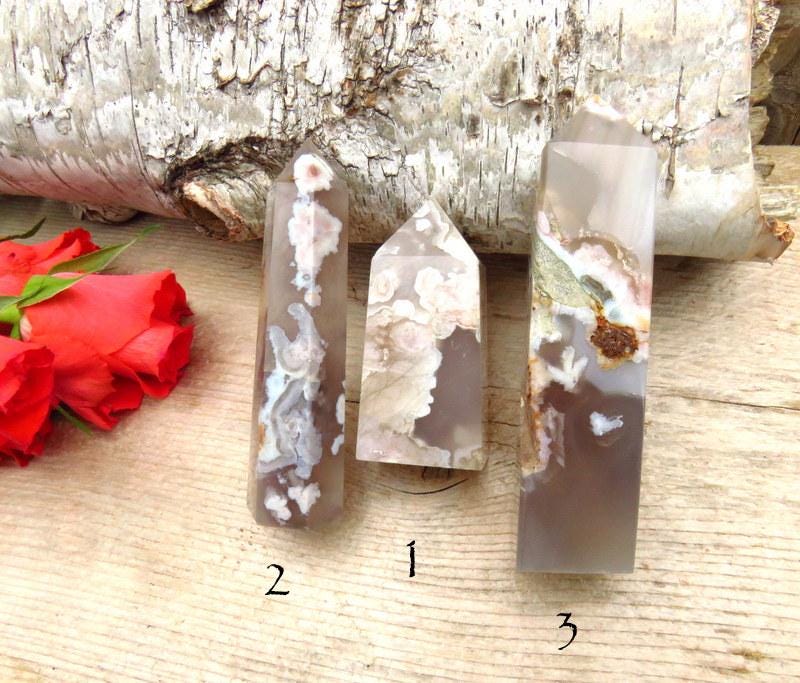 Flower Agate crystal tower - So much prettier in person ! You choose ! These beautiful Flower Agate towers are a lovely gray, white and brown with unique 'flower' patterns throughout. A beautiful addition to your space.