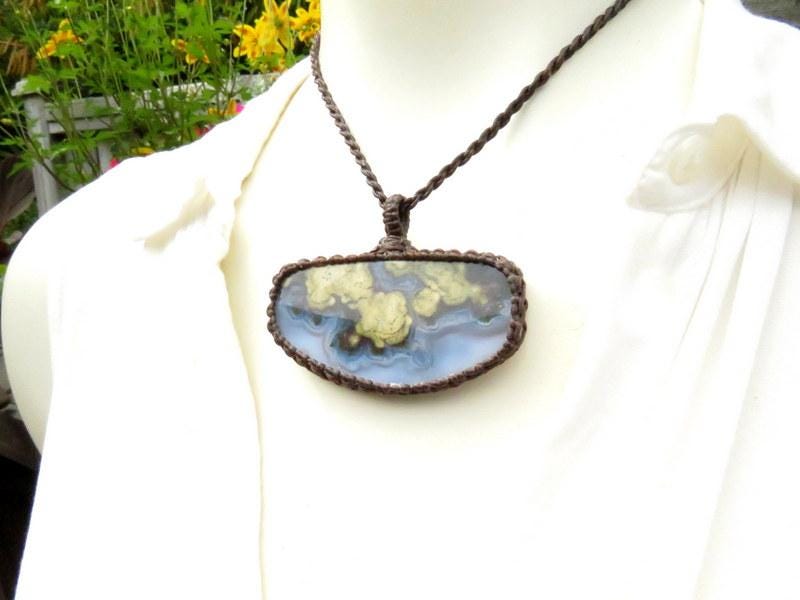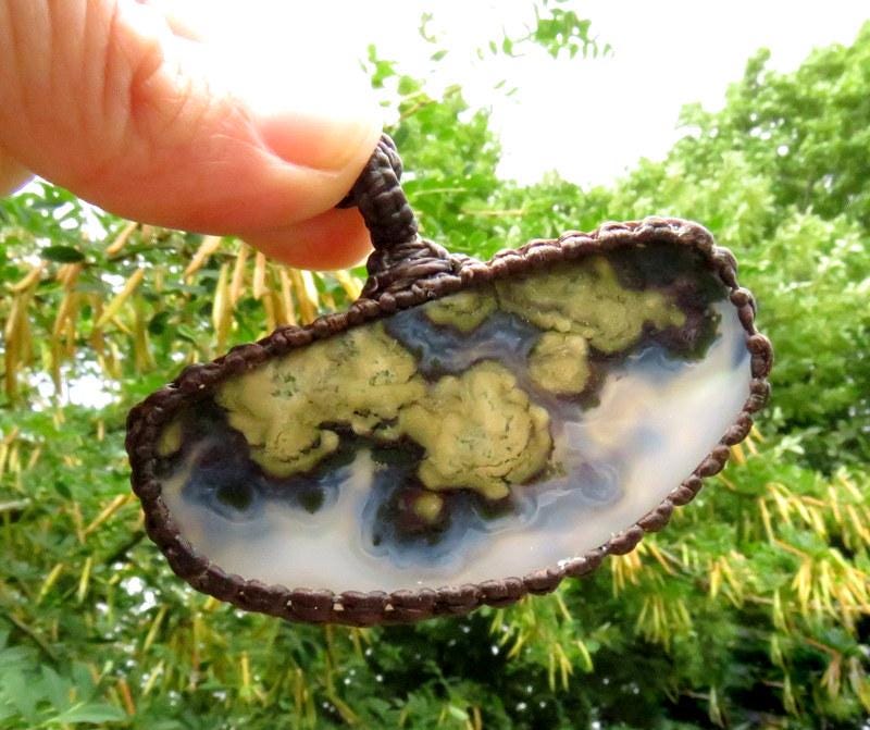 Perfect for the nature lover ! This glorious Plume Agate macrame necklace is full of colorful plumes and patterns - a unique shape and a generous size! 🌿 Plume Agate's captivating and earthy aesthetic and its connection to the natural world make it a unique and sought-after gemstone for jewelry and metaphysical purposes. 🌿✨