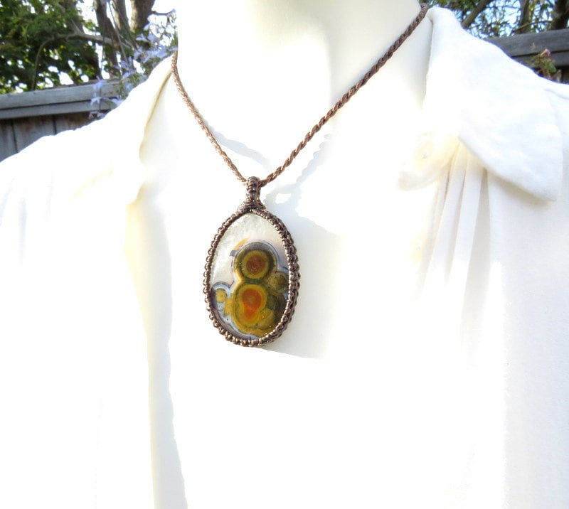 👉FOR USA BUYERS: ALL PRICES IN OUR SHOP INCLUDE APPLICABLE DUTIES/TARIFSS - YOU WILL NOT BE CHARGED DUTIES AGAIN WHEN YOUR ORDER ARRIVES. ALL DUTIES BETWEEN CANADA/USA ARE PRE-PAID BY THE SELLER AND SUBMITTED TO OUR SHIPPING CARRIER. AGAIN, YOU WILL NOT HAVE TO PAY DUTIES AGAIN WHEN YOU RECEIVE YOUR ORDER. SHIPPING IS FREE 🌹Fantastic and RARE Turkish Agate macrame necklace -✨ Phenomenal Agate from Turkey - fascinating orbs and unique colors ! Incredible addition to your gemstone treasure box ✨