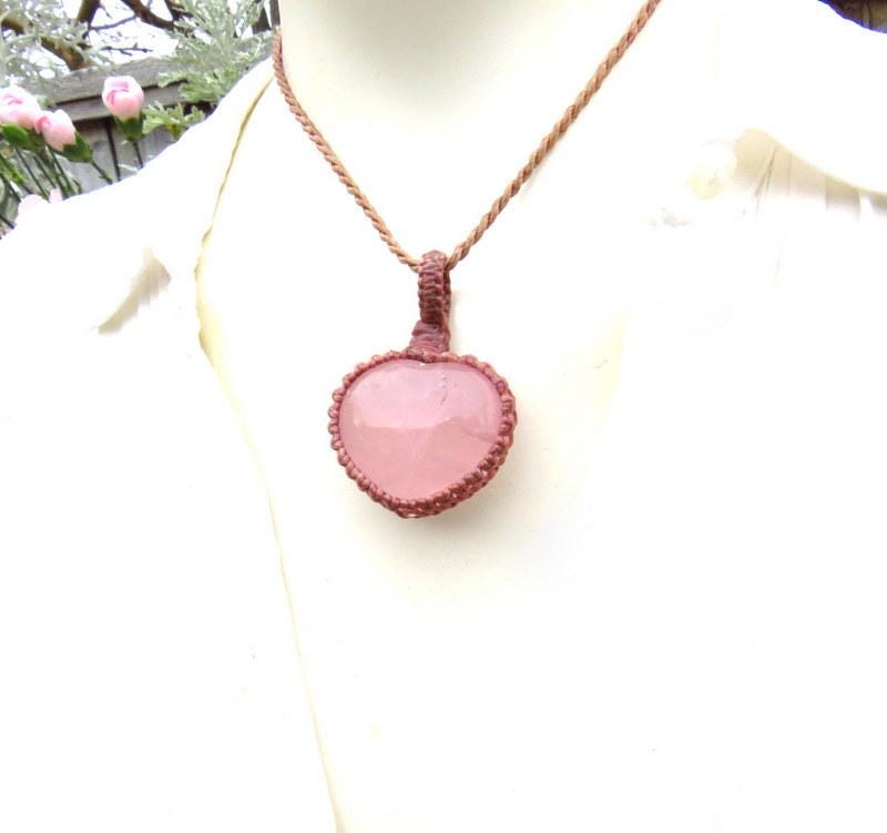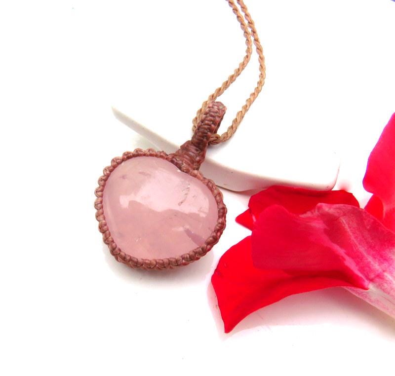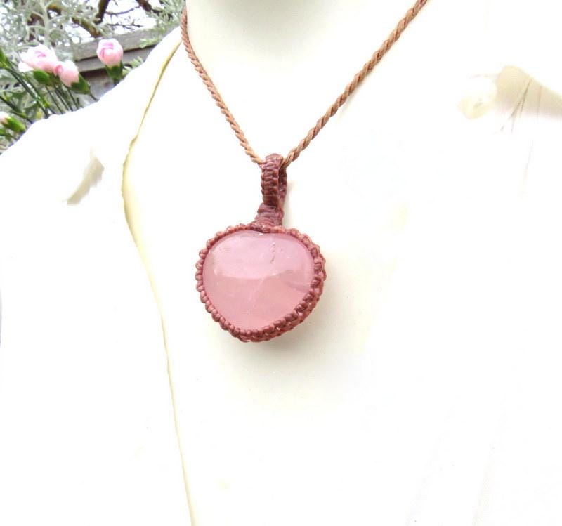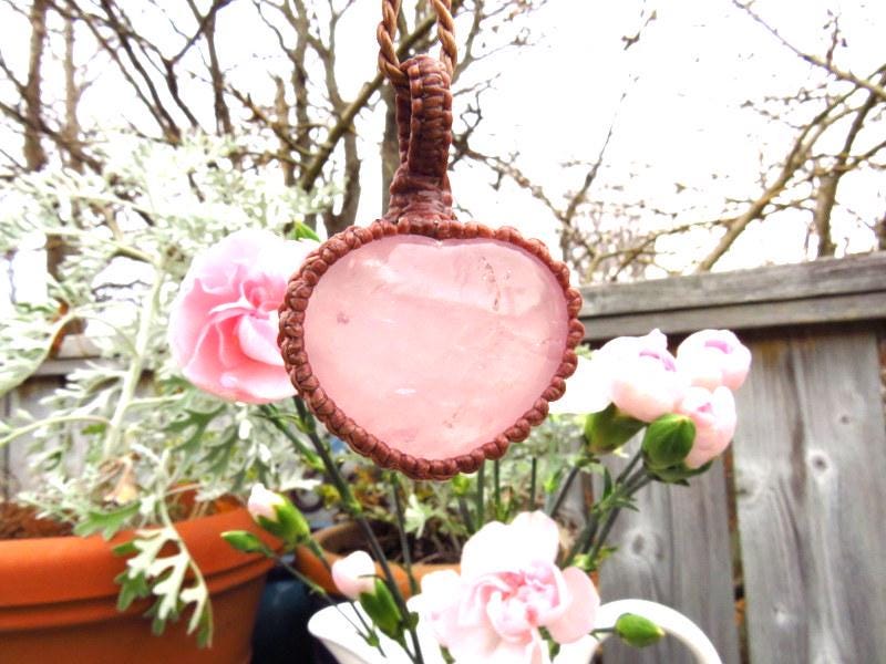 💕SELF-LOVE & COMPASSION🌹Beautiful soft pink Madagascar Rose Quartz Heart macrame necklace - translucent pink Rose Quartz heart-shaped crystal - such a gorgeous rose quartz. An important stone for helping us to raise our vibrations of love and compassion - for ourselves and others ~ : )