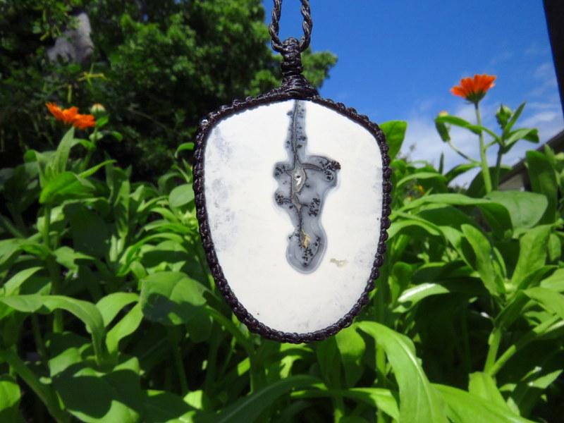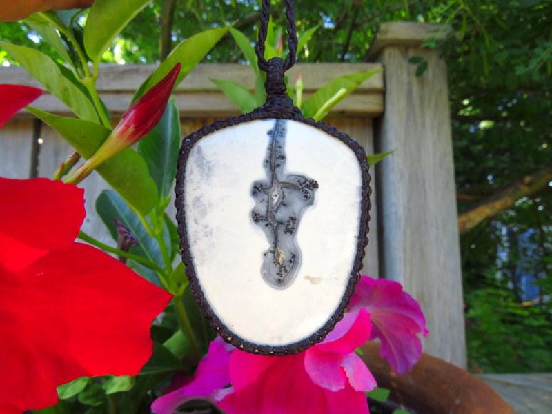 Beautiful & rare Maligano Jasper macrame necklace ! Large Maligano Jasper from Sulawesi Island, Indonesia. This piece contains magnificent patterns that resemble a little GECKO ! (*what do you see?) One of a kind !