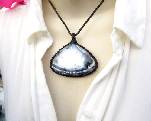 Jewelry gift ideas, Dendrite Opal macrame necklace