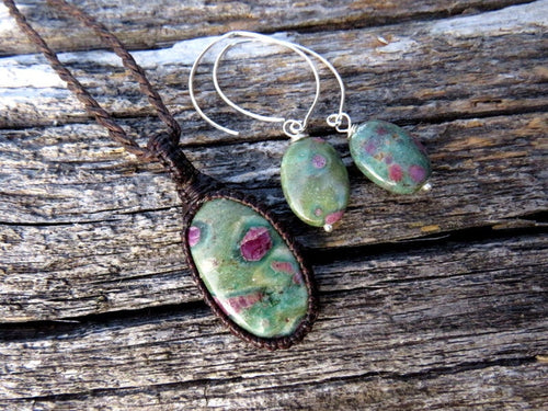 Ruby Fuchsite necklace and earring set, gemstone necklace
