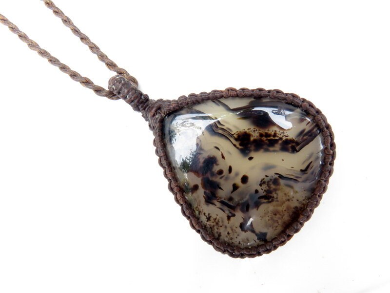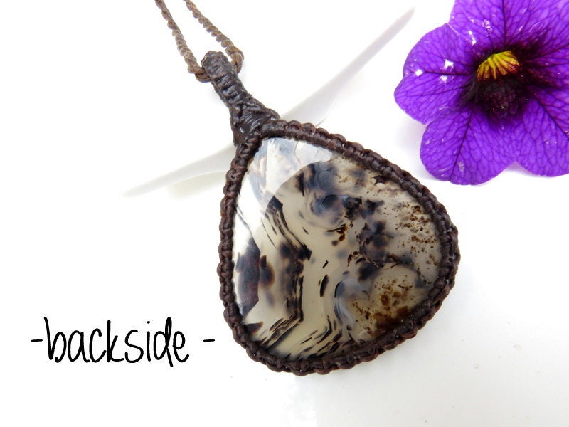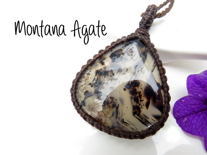 Gorgeous Montana Agate macrame necklace - This remarkable Agate is found in the Yellowstone river region in Montana, USA . This scenic Agate is known for its beautiful formations that make the most beautiful scenes. This piece looks to have been touched by an artists brush - we see mountains, billowy clouds - so dreamy! You will receive the exact stone in photos #2-8