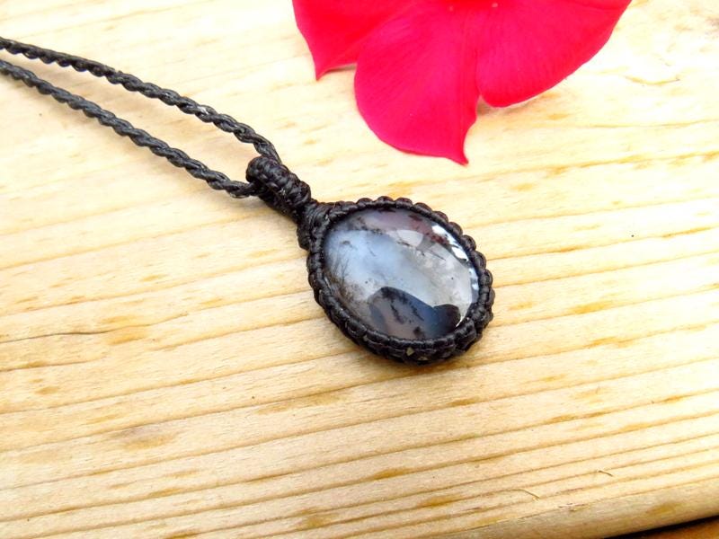 🌱GROWTH & CHANGE 🍂 A simply stunning dainty Dendrite Opal macrame necklace - One of our best selling gemstones - This piece of dendrite opal, with its winter-y mysterious landscape, is one of mother nature's masterpieces ✨ You will receive the exact piece in photos #1-6 and the video.