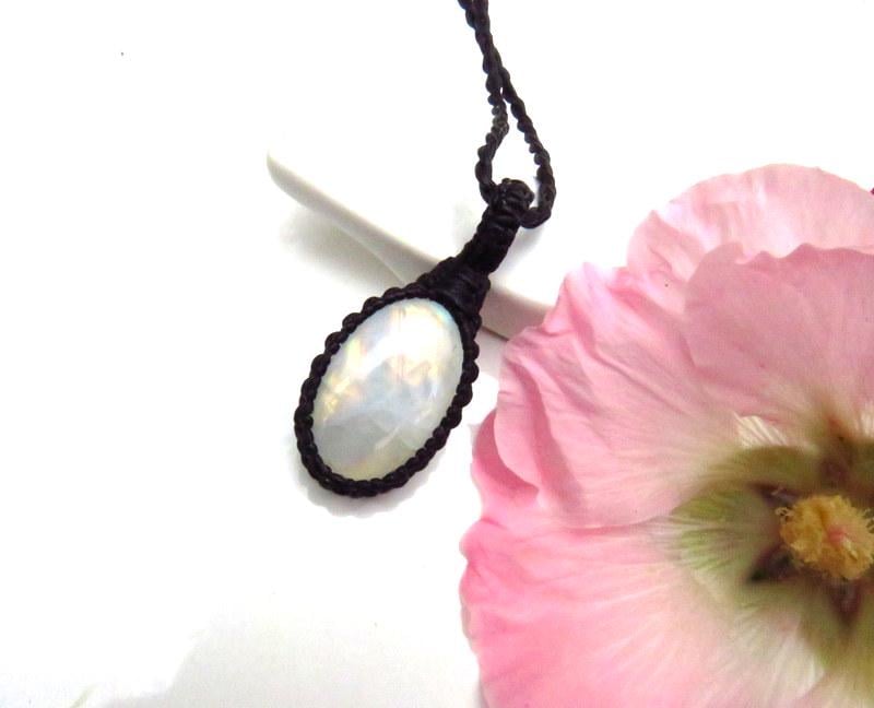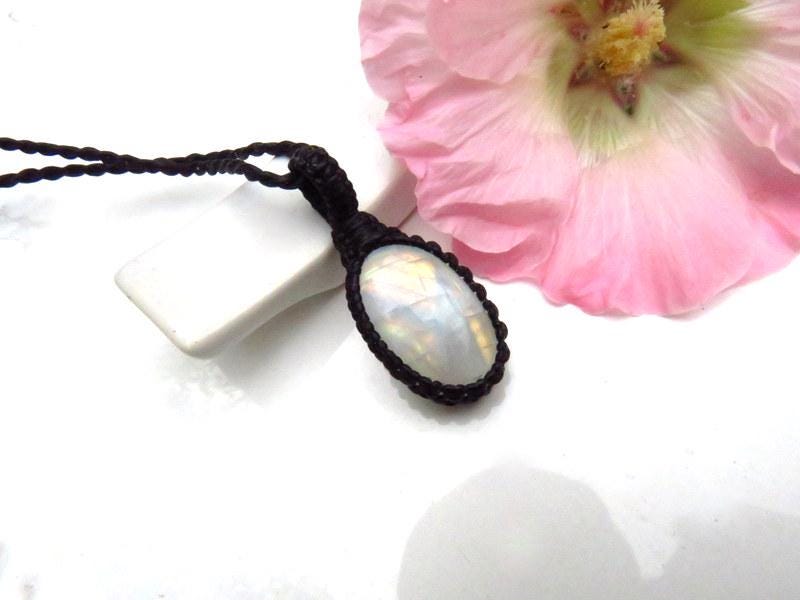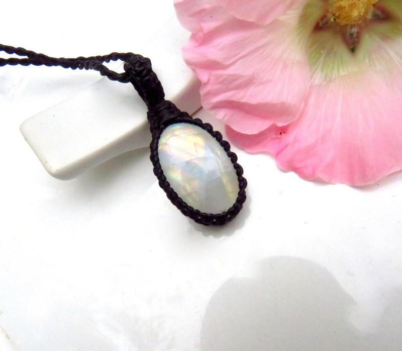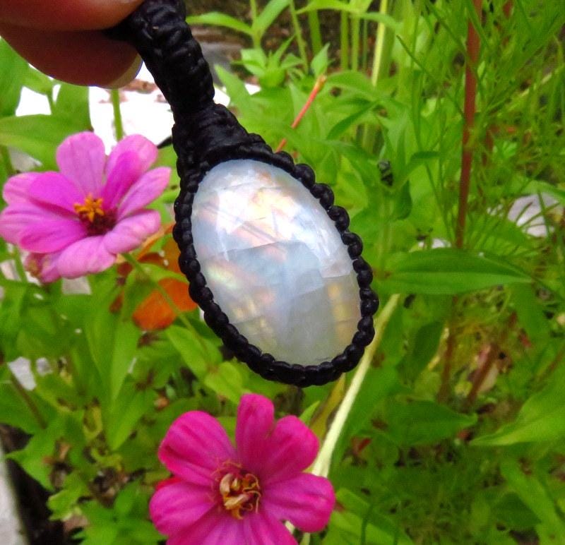 ✨LOVE, COMFORT & FORGIVENESS✨ Superb quality - Dainty, rainbow flash Moonstone macrame necklace - 🌈 Moonstone makes a great gift for the important WOMAN in your life!