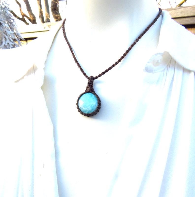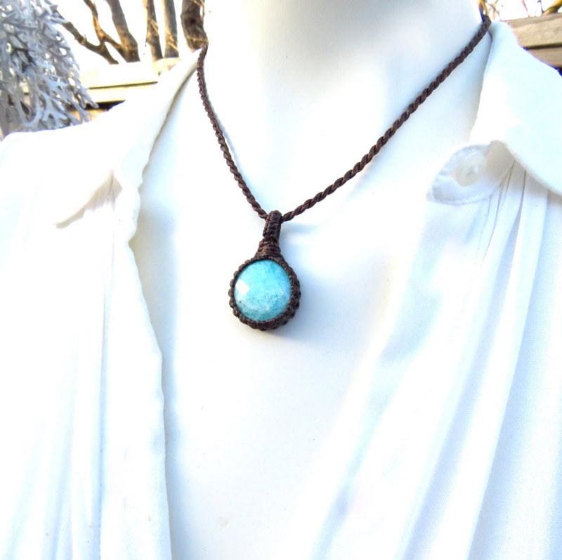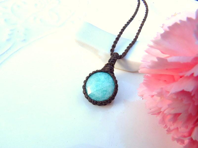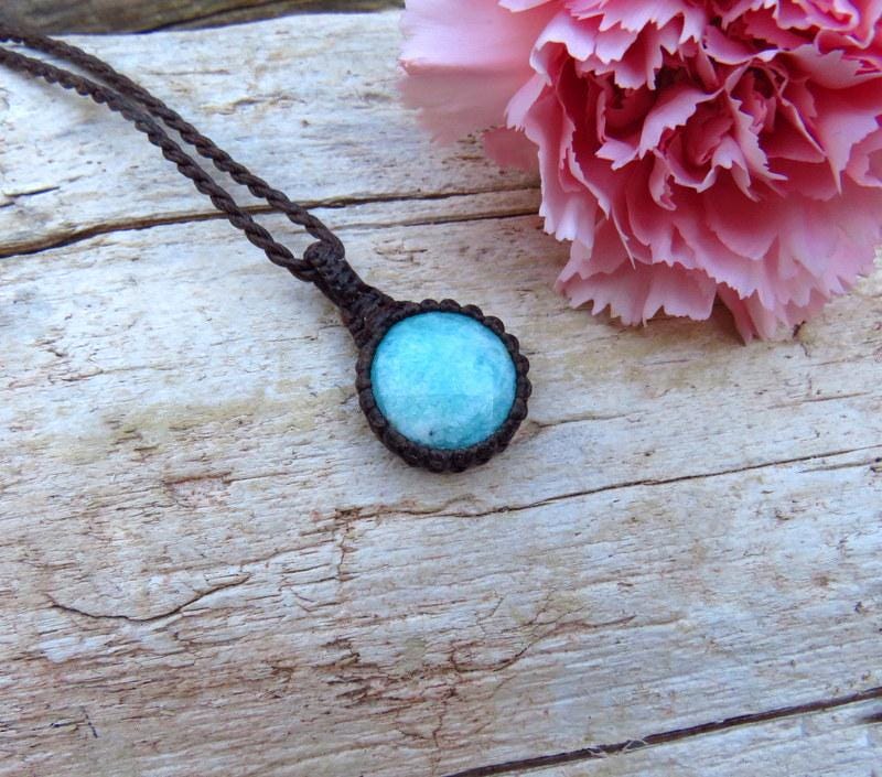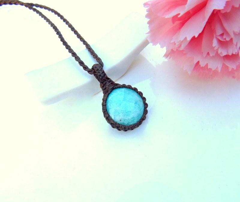 Materials: gemstones, semiprecious stones, waxed cord, amazonite.