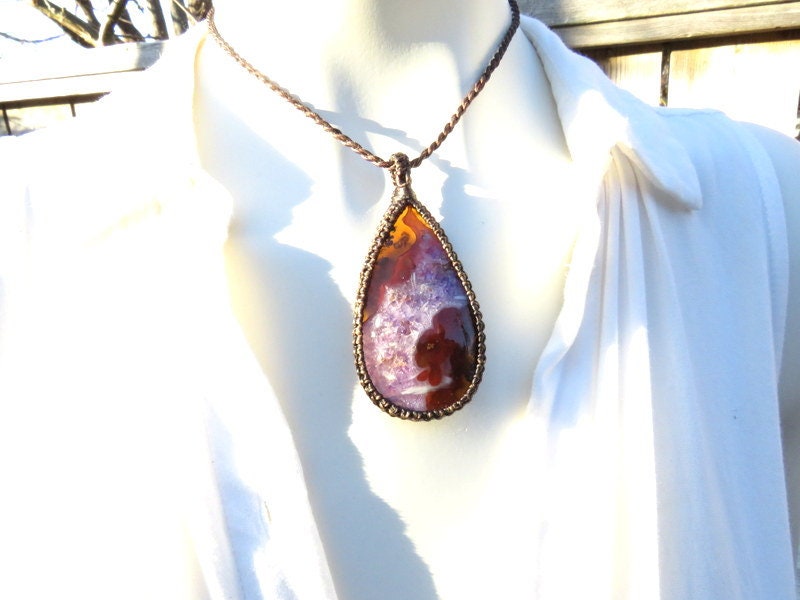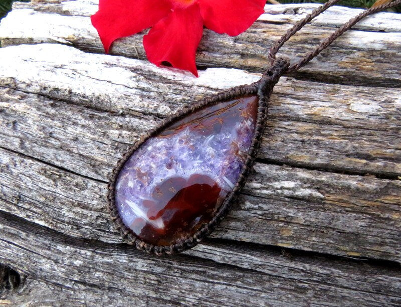 😍WOW 😍 Can it get any better than this ? This beautiful piece is an Amethyst Agate macrame necklace -gorgeous and unique colors - deep burgundy red Agate and purple Amethyst ! This beautiful gemstone is sourced in Turkey and is considered a rare type of Agate.