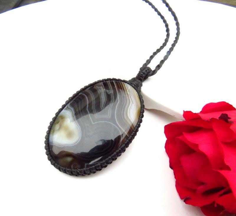Exceptional Sardonyx gemstone necklace - a very unique Sardonyx gemstone with mesmerizing banding in classic black, gray and brown ! Sardonyx is a best seller in our shop 🖤✨🖤