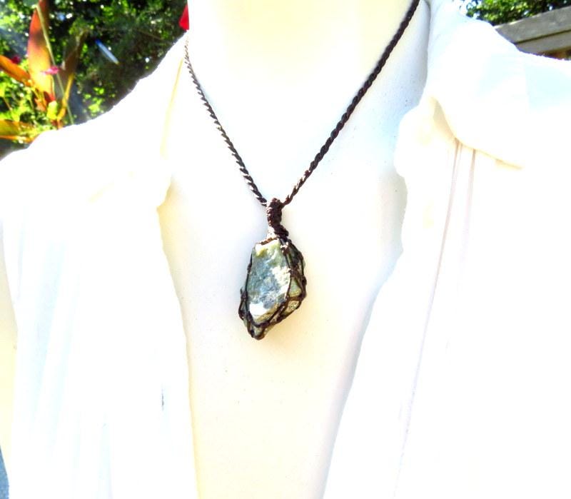 Each of our creations is lovingly hand crafted with meticulous attention to detail, aesthetic, and durability. Please note, however, that some stones are naturally fragile, so handling your jewelry with care is still recommended. Please keep your necklace dry to protect the knotwork.