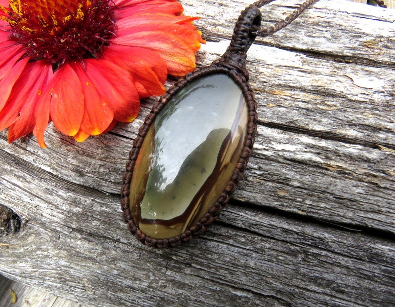 Earthy Polychrome Jasper Necklace - stunning sage green and tan desert landscape - the patterns are amazingly clear and crisp - classic oval shape and a generous size - one of a kind ! *You will receive the exact piece in photos #1-7 and the video.