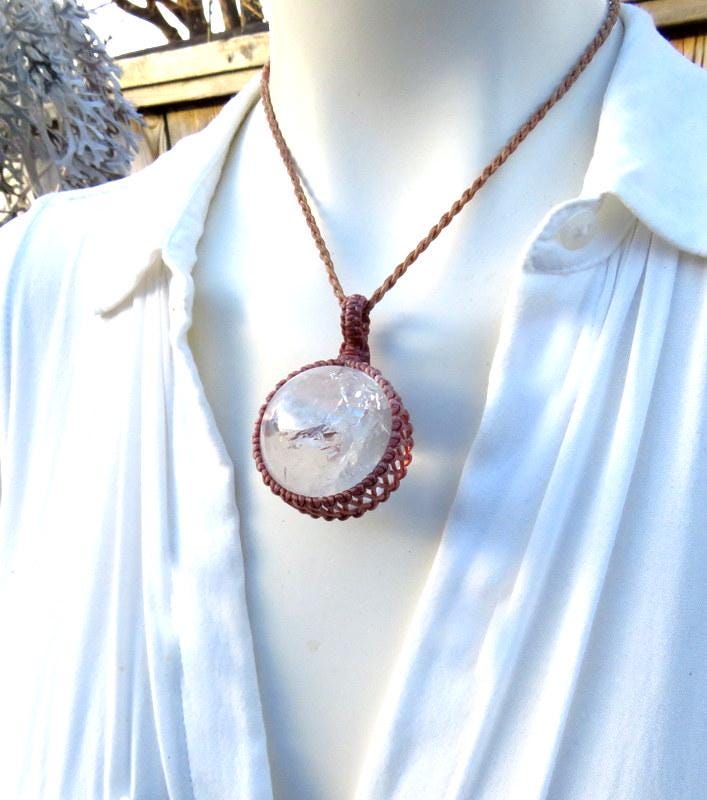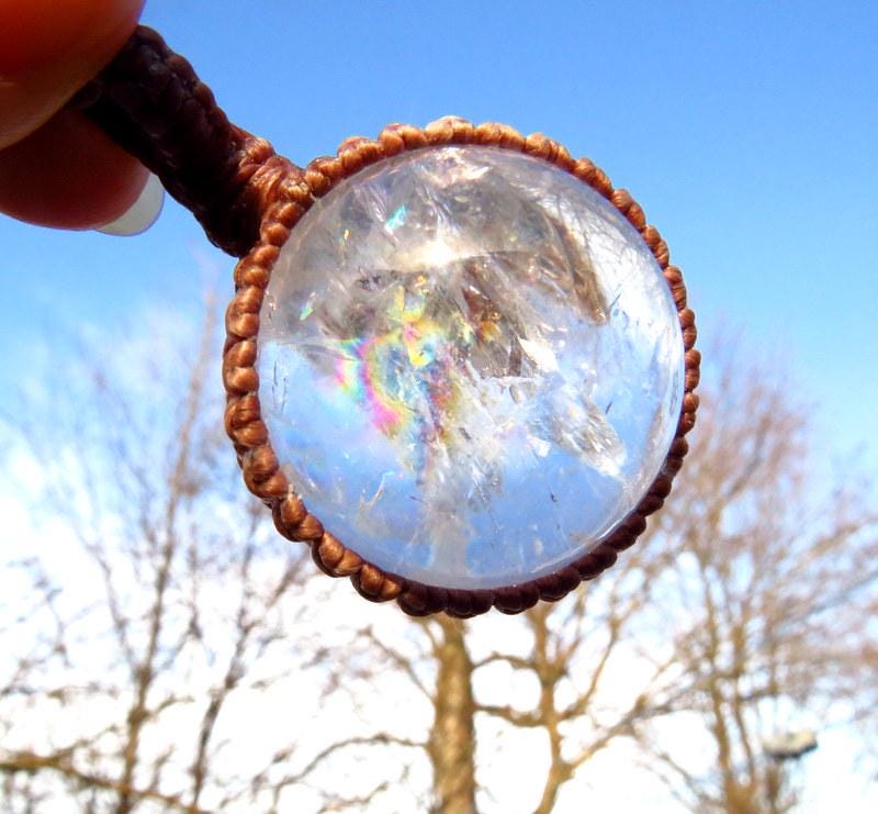 ✨ Fantastic clear Quartz sphere crystal necklace - This stunning Quartz crystal has a lot of magic inside and is full of rainbow prisms 🌈 This crystal is tingling with excitement to find its new owner✨ - Wrapped 100 % securely using the art of knot -tying or 'macrame.' **prettier in person!